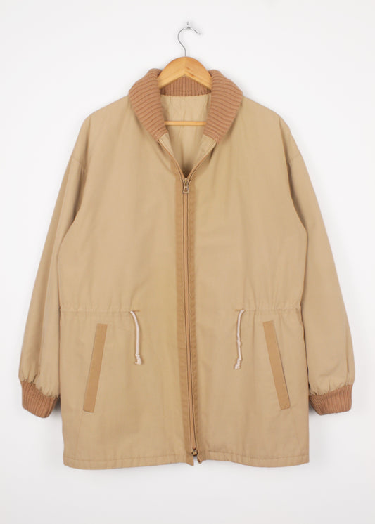 Vintage parka v béžové barvě s pleteným límcem