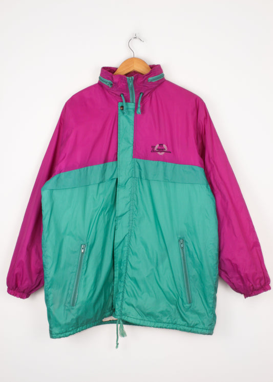 Lehká bunda v zelené a purpurové barvě