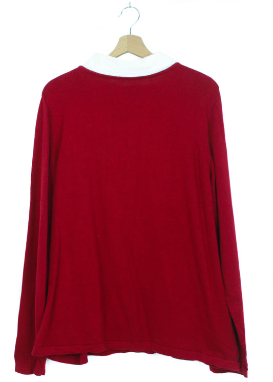 Vintage červený polo svetr s bílým límcem