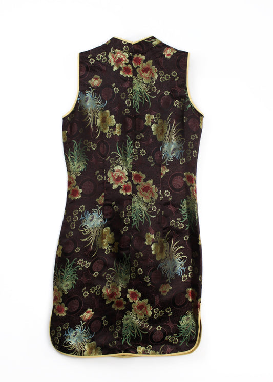 Tradiční asijské květinové šaty v hnědé barvě