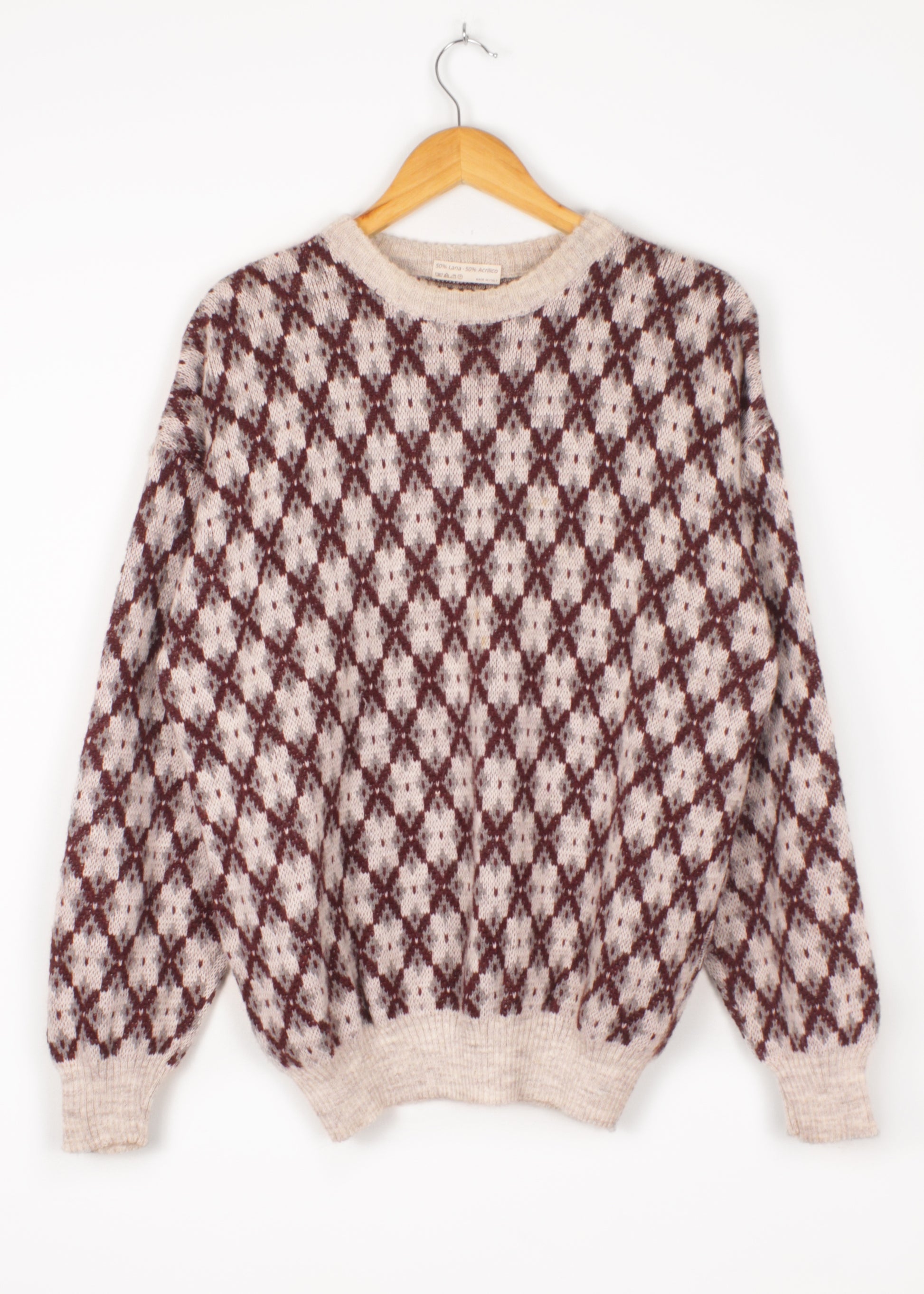 Vintage woolen sweater in cloud grey and burgundy